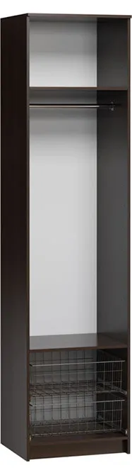 Вместительные стеллажи, выдвижные корзины, вешалки, брючницы и полки для обуви — вот составные элементы идеальной гардеробной. Система легка в монтаже и позволяет комбинировать модули, располагая их в нужном порядке.